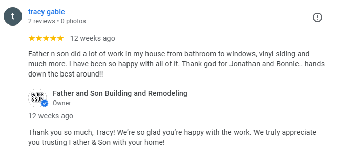 Father and Son Building and Remodeling has been serving the Barnegat Township area for years, and our reviews speak for themselves. Homeowners keep coming back because we deliver on what we promise—every time. We take pride in treating your home like it's our own, keeping your property clean, and finishing projects on schedule. Our five-star reviews say it all.