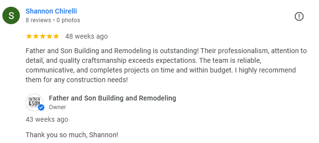 Ready to get started? Contact Father and Son Building and Remodeling today to schedule your free consultation. Let's build something great together.